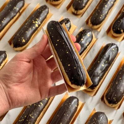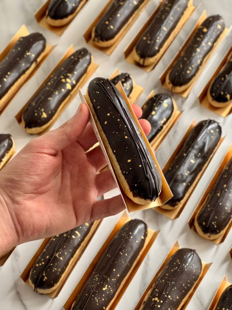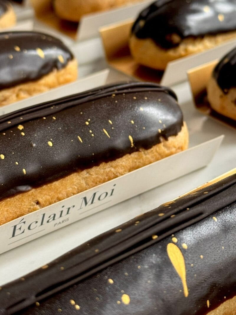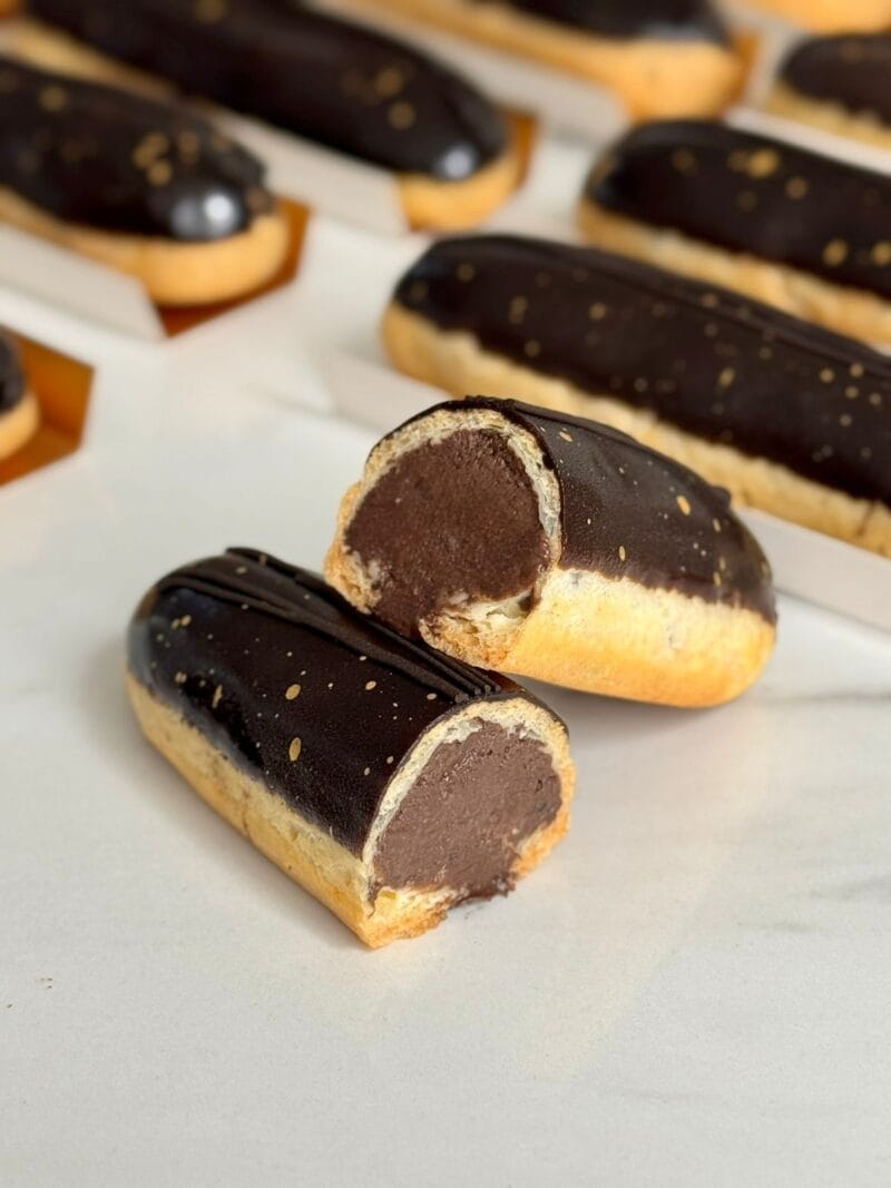 800Uma tentação refinada da confeitaria francesa, o éclair da Eclair Moi apresenta uma masse a choux leve, coberta por um glaçage de chocolate amargo, e recheada com uma ganache cremosa e sumptuosa de chocolate amargo. Magnificência em cada mordida.